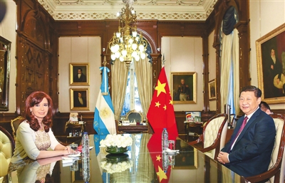 7月18日,國(guó)家主席習(xí)近平在布宜諾斯艾利斯同阿根廷總統(tǒng)克里斯蒂娜舉行會(huì)談,兩國(guó)元首就中阿關(guān)系及共同關(guān)心的問(wèn)題深入交換意見,達(dá)成重要共識(shí),一致決定將中阿關(guān)系提升為全面戰(zhàn)略伙伴關(guān)系,堅(jiān)定把對(duì)方視為重要發(fā)展機(jī)遇和發(fā)展伙伴,加強(qiáng)互利合作和戰(zhàn)略協(xié)作,造福兩國(guó)和兩國(guó)人民,增強(qiáng)新興市場(chǎng)國(guó)家和發(fā)展中國(guó)家團(tuán)結(jié)合作。