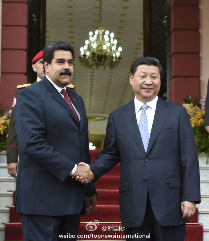 ??? 【習(xí)近平明確中委合作“引擎、主軸和輪子”】習(xí)近平20日同馬杜羅總統(tǒng)會(huì)談時(shí)說(shuō),我們要加強(qiáng)頂層設(shè)計(jì),以金融和投資為引擎,以能源合作為主軸,基礎(chǔ)設(shè)施建設(shè)、農(nóng)業(yè)、礦業(yè)、科技合作等多個(gè)輪子一起轉(zhuǎn),促進(jìn)中委合作全方位發(fā)展。(李學(xué)仁攝)