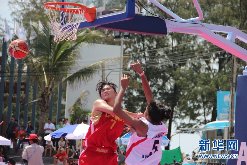 ??? 11月16日,中國沙灘籃球運動員黃銀婷(左)在比賽中。中國體育代表團16日在泰國普吉舉行的第四屆亞洲沙灘運動會上勇奪2枚金牌和2枚銅牌。當(dāng)天比賽全部結(jié)束時,中國隊以3金2銀5銅的成績暫列獎牌榜第五。新華社發(fā)(塔納攝)