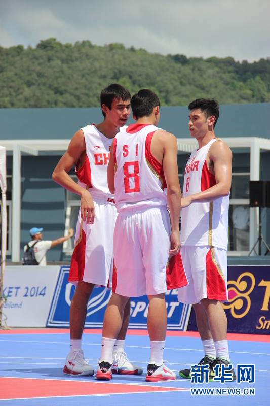 ??? 11月16日,中國沙灘籃球運動員劉桂均(左)、司坤(中)、劉洺宇(右)在比賽中場。中國體育代表團16日在泰國普吉舉行的第四屆亞洲沙灘運動會上勇奪2枚金牌和2枚銅牌。當天比賽全部結束時,中國隊以3金2銀5銅的成績暫列獎牌榜第五。新華社發(fā)(塔納攝)