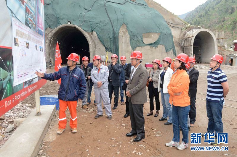 5月1日,中國駐烏茲別克斯坦大使孫立杰在中國企業(yè)承建的“安格連—帕普”鐵路隧道施工現(xiàn)場(chǎng)。沙達(dá)提 攝