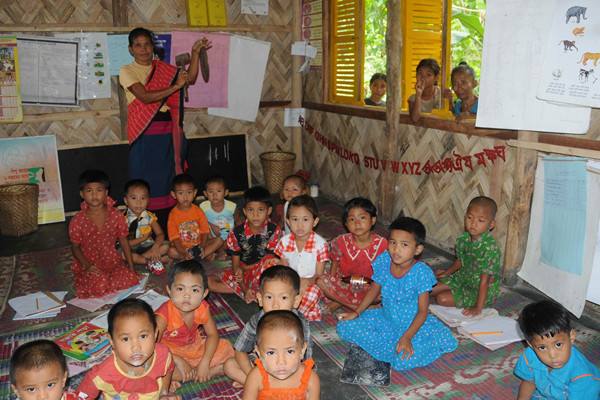 ↑2009年7月17日,孟加拉國東南部科格拉焦里縣,孩子們?cè)诼?lián)合國兒童基金會(huì)支持的社區(qū)發(fā)展計(jì)劃下接受學(xué)前教育。(新華社記者黃亞男攝)