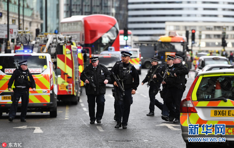 當(dāng)?shù)貢r(shí)間2017年3月22日,英國(guó)倫敦,英國(guó)威斯敏斯特議會(huì)大廈附近發(fā)生襲擊事件,威斯敏斯特橋上有車(chē)輛沖撞行人;另外有持刀歹徒攻擊議會(huì)大廈執(zhí)勤警察后被擊斃,報(bào)道稱多人受傷。襲擊發(fā)生后,議會(huì)大廈臨時(shí)關(guān)閉,英國(guó)議會(huì)下院的會(huì)議暫停。倫敦警方目前暫時(shí)將此事作為恐怖事件處理。據(jù)外媒報(bào)道,英國(guó)警方封閉了倫敦議會(huì)大廈周邊的街道。圖片來(lái)源:東方IC