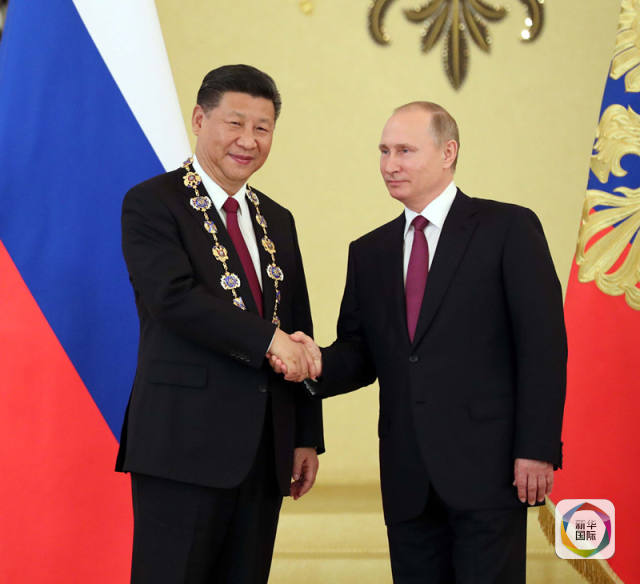4日下午會談結束后,普京總統(tǒng)向習近平主席授予俄羅斯國家最高榮譽勛章——“圣安德烈”勛章。