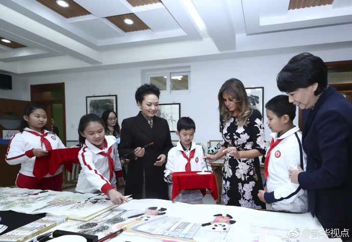 彭麗媛和梅拉尼婭在古建筑教室。(記者白潔、鞠鵬)(據(jù)新華社“新華視點(diǎn)”微博報道)
