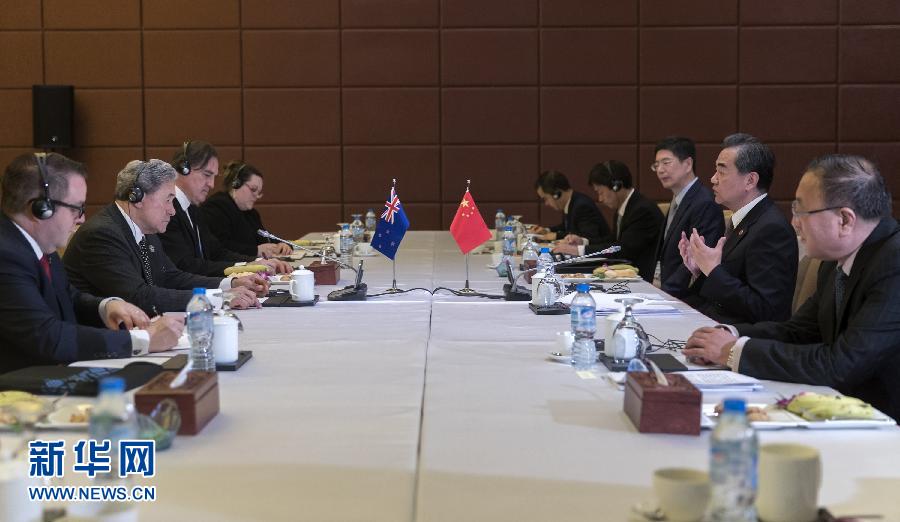 11月11日,外交部長王毅在越南峴港應(yīng)約會見新西蘭副總理兼外長彼得斯。 新華社記者 費(fèi)茂華 攝