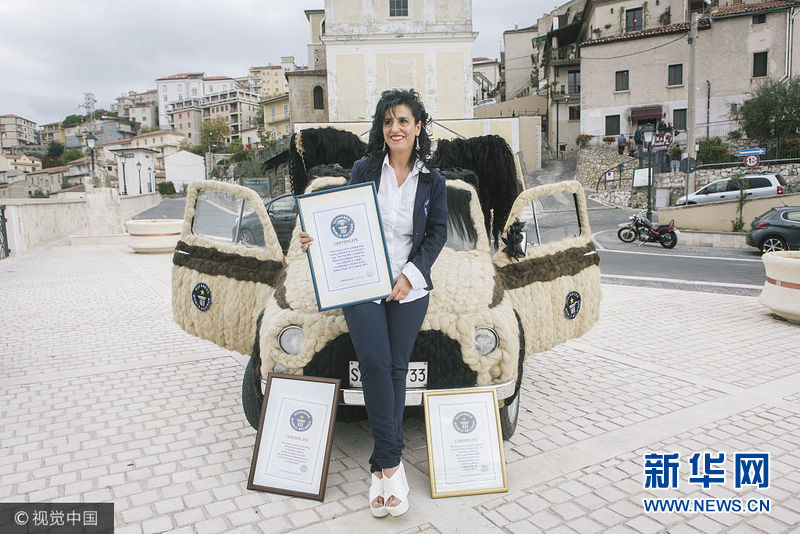 當(dāng)?shù)貢r間2017年10月22日,意大利帕杜拉,一位意大利發(fā)型設(shè)計師Maria Lucia Mugno花費了超過8萬英鎊來裝飾自己的車子,這讓她獲得了吉尼斯世界紀(jì)錄。這項工程需要150個小時來完成,用于裝飾的頭發(fā)總重量達到100公斤。(圖片來源:視覺中國)