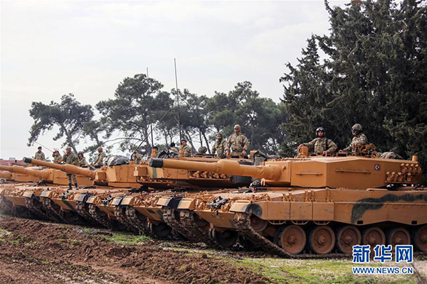 1月21日,在土耳其哈塔伊省與敘利亞邊境地區(qū),土軍地面部隊(duì)準(zhǔn)備開往敘利亞北部阿夫林。土耳其總理耶爾德勒姆21日宣布,土耳其軍隊(duì)當(dāng)天上午已進(jìn)入敘利亞邊境,展開對敘北部阿夫林的地面軍事行動。 新華社發(fā)