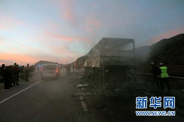 電視臺(tái)現(xiàn)場(chǎng)畫面顯示,大巴車嚴(yán)重?fù)p毀,只剩焦黑的車架。一位幸存乘客說,事發(fā)時(shí)車上乘客大多在睡夢(mèng)中。有乘客打碎車窗逃生,未能逃出的乘客則大多遭遇不幸。