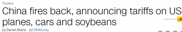 CNN發(fā)表題為《中國還擊,對美國進口的飛機、汽車和大豆加征關(guān)稅》的文章。