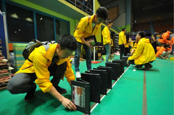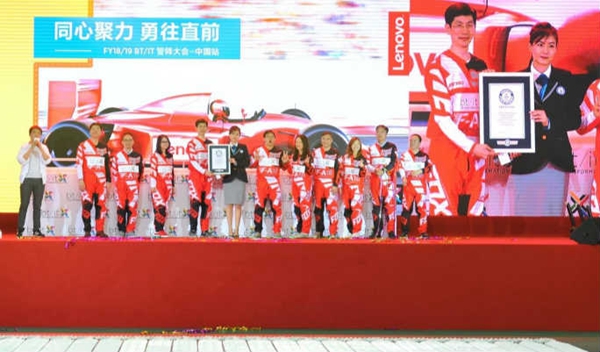 據(jù)吉尼斯世界紀(jì)錄官網(wǎng)報(bào)道,近日,聯(lián)想集團(tuán)在北京航空航天大學(xué)體育館舉辦了以“同心聚力,勇往直前”為主題的誓師大會,1300名聯(lián)想員工參加了此次大會,并創(chuàng)造了一項(xiàng)新的吉尼斯世界紀(jì)錄稱號。在吉尼斯世界紀(jì)錄認(rèn)證官的見證下,所有員工歷時(shí)兩小時(shí),用520臺筆記本電腦成功創(chuàng)造“以多米諾骨牌形式擺放并推倒最多筆記本電腦”的新紀(jì)錄。