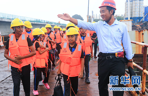 “大橋還有多久能建好?”“建橋是不是很難?”“工人叔叔們有沒有危險(xiǎn)?”……孩子們整齊地排成兩列走在大橋上,一邊好奇地四處望著,一邊連珠炮似的向身邊的中國(guó)工人叔叔發(fā)問。