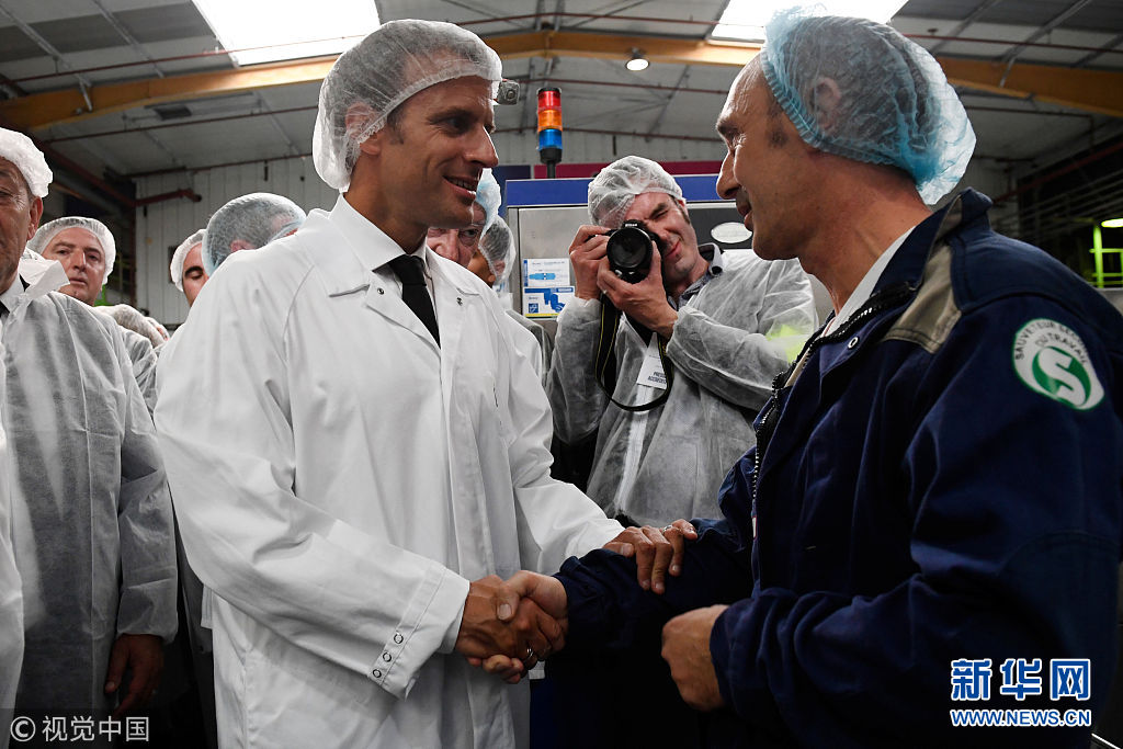 法國總統(tǒng)馬克龍變身“吃貨” 視察工廠不忘品嘗甜點(diǎn)