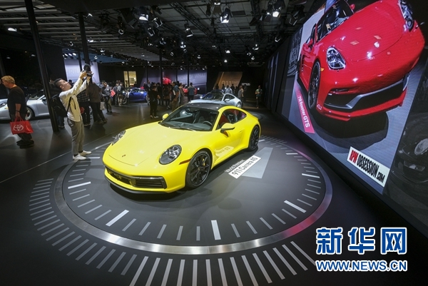 11月30日,在美國洛杉磯,人們在車展上參觀保時捷911卡雷拉4S。 新華社發(fā)(趙漢榮攝)