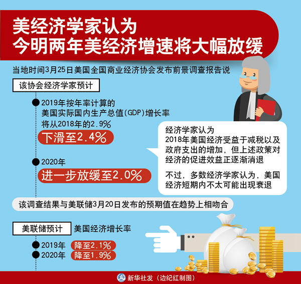 新華社華盛頓3月25日電(記者許緣 鄧仙來)美國全國商業(yè)經(jīng)濟協(xié)會25日發(fā)布前景調(diào)查報告說,該協(xié)會經(jīng)濟學(xué)家預(yù)測,主要受全球經(jīng)濟增長放緩和美國貿(mào)易政策影響,今明兩年美國經(jīng)濟增速將大幅放緩。