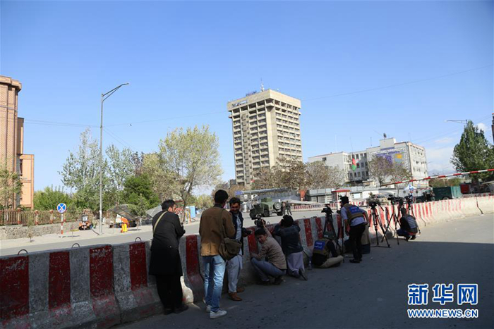 4月20日,在阿富汗首都喀布爾,記者聚集在襲擊現場。新華社發(fā)(拉赫馬特·阿里扎達 攝)