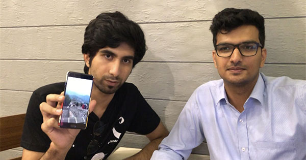 帕爾特·達爾(左)和達克什·卡迪安展示他們?nèi)ブ袊恼掌?。新華社記者趙旭攝