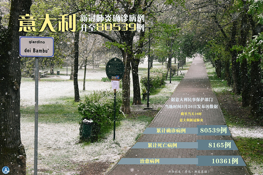 新華社羅馬3月26日電(記者李潔)據(jù)意大利民事保護(hù)部門26日發(fā)布的數(shù)據(jù),截至當(dāng)天18時(shí),意大利累計(jì)新冠肺炎確診病例升至80539例,累計(jì)死亡病例8165例,治愈病例10361例。