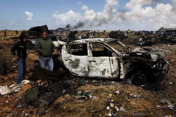 法國(guó)戰(zhàn)機(jī)摧毀數(shù)輛卡扎菲軍隊(duì)裝甲車