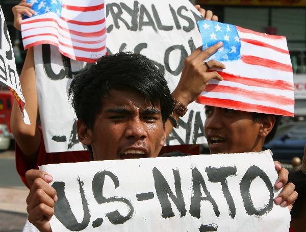 菲律賓民眾抗議多國(guó)部隊(duì)對(duì)利比亞進(jìn)行軍事打擊